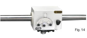 7) Lead Screw Operated End Stops: Remote lead screw adjustment of traverse width operated from one end bracket position. Supplied with a hand wheel control or with a control motor drive.