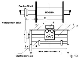 b) Tapered winding by self adjusting end stops for bi-conical and conical spools