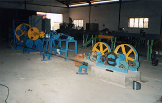 The machine is used to form a multi conductor cable core by twisting 2, 3 or 4 insulated round or sector shaped conductor with filters. The machine is heavy duty , robust to accept insulated conductors upto 400 sq. mm, 1.1 kV to 33 kV range laid –up diameter up to maximum of 100 mm. The machine consists of 1+3 core laying up Cage, Triple die block, 2 nos PVC/Polyester Taping Heads, Caterpillar, Take Up stand with fully automatic traversing system, suitable main drive and control panel, are provided. |