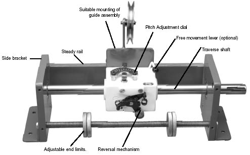 Traverse assembly consists of Traverse Unit, Shaft, side Brackets, Adjustable Reversal End Limits, Steady Rail etc. Suitable Guide Assembly is mounted on the traverse unit. When heavy guide assembly is to be traversed or when the tension / twisting forces in the material traversed are large or when there is large overhang for the guide assembly, a separate independent load carrier is used. Assembly designs, mounting options, and accessories for every specialized applications and requirements are available. Traverse assembly is manufactured and supplied as per customer requirement of shaft length and accessories. |